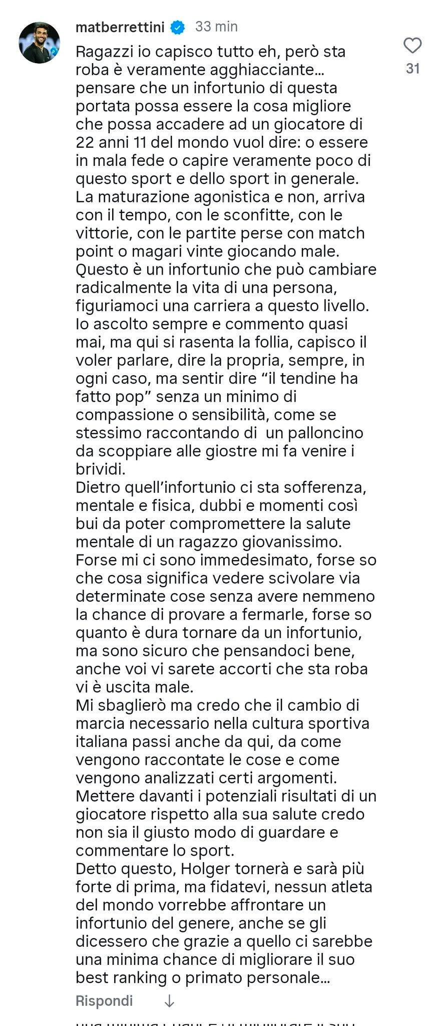 “Se Rune la prende nel modo giusto, forse la rottura del tendine d’Achille è la cosa migliore che gli potesse accadere”.